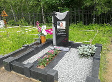 Затем приносим надгробье, предварительно укрепив на нём фотокерамику с изображением усопшего, устанавливаем его. Территорию участка засыпаем каменной крошкой, в цветник сажаем растения, в одном из углов места захоронения организовываем клумбу.